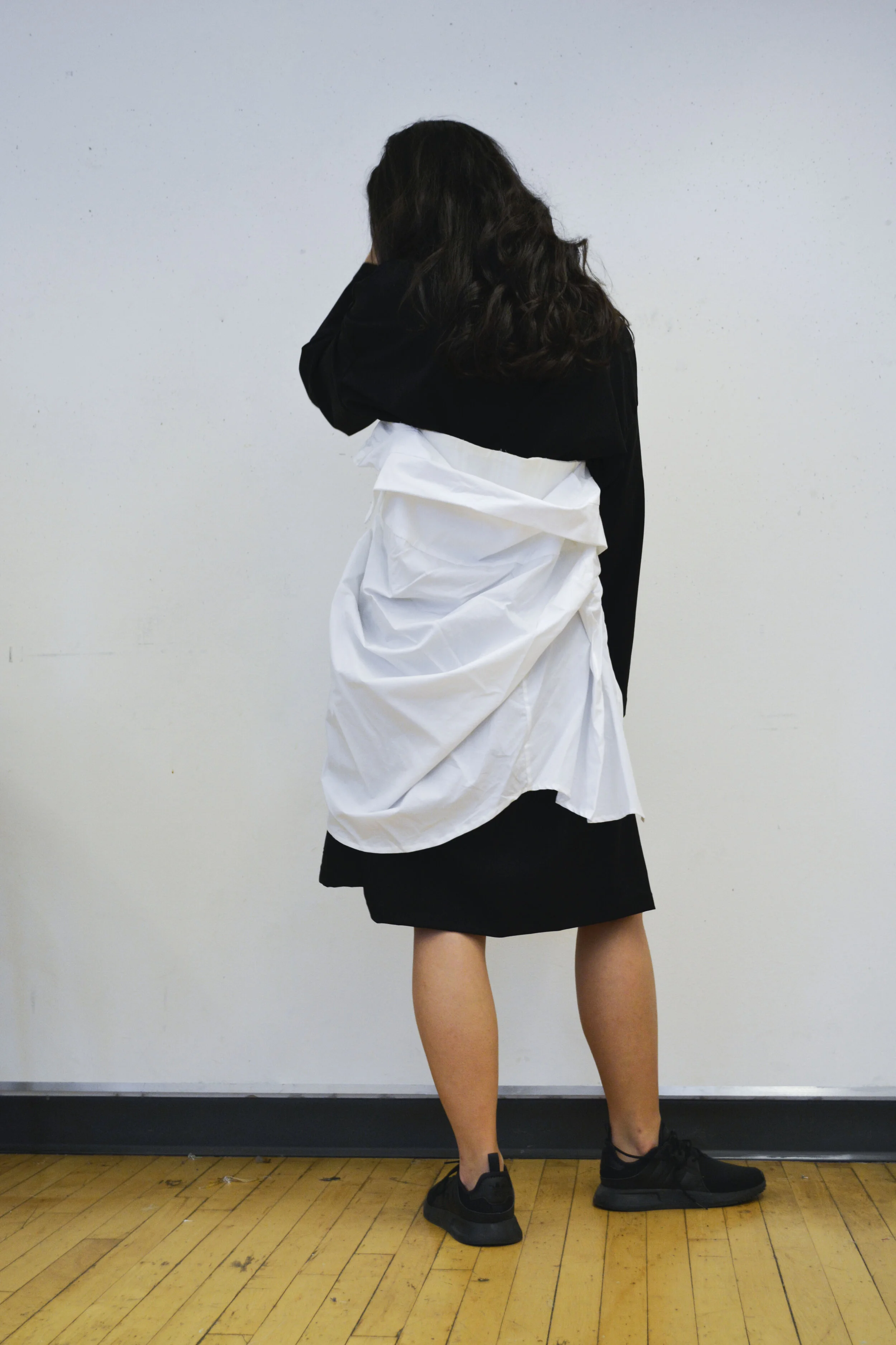 This project references the costumes of plague doctors and is inspired by the decay of bodies. This inspiration was transformed into clothes that are sculpturally falling off of the body.